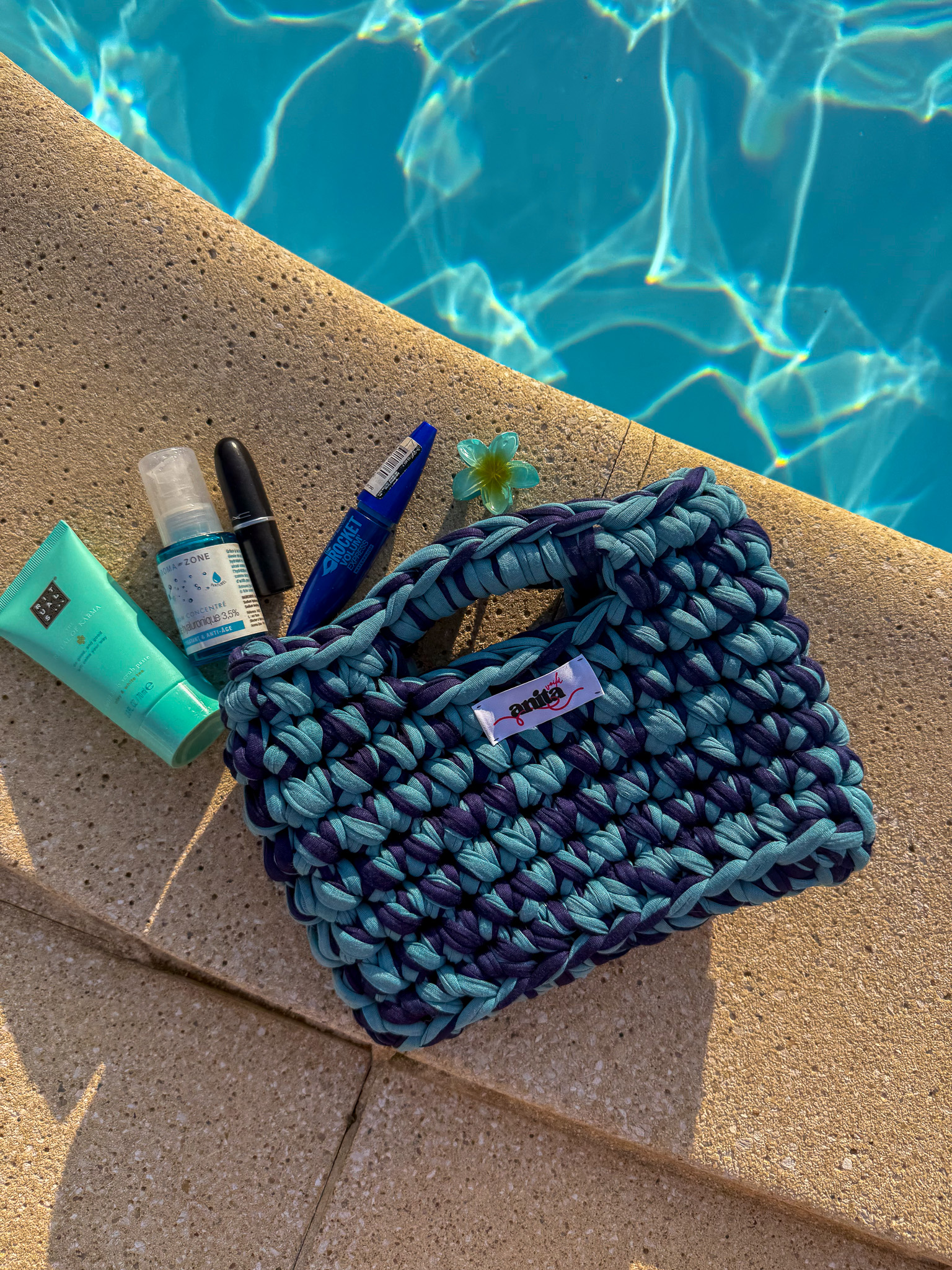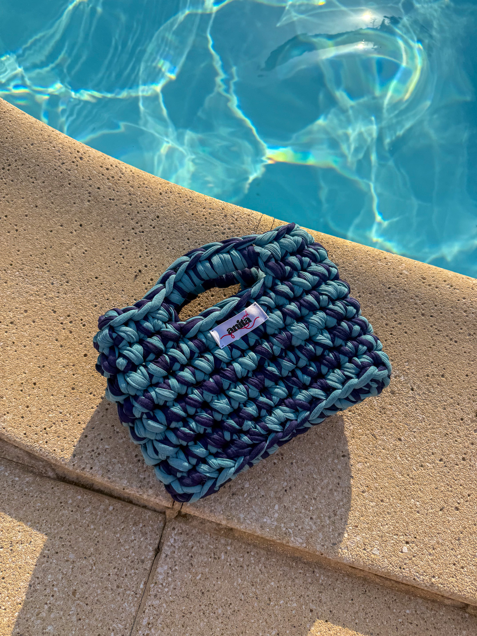 Chaque sac est confectionné avec soin à la main, à partir de fil de coton recyclé, rendant chaque pièce absolument unique. Parfait pour accompagner tes escapades citadines comme tes balades en bord de mer, le sac Lagoon combine élégance et légèreté avec un style qui ne passe pas inaperçu.